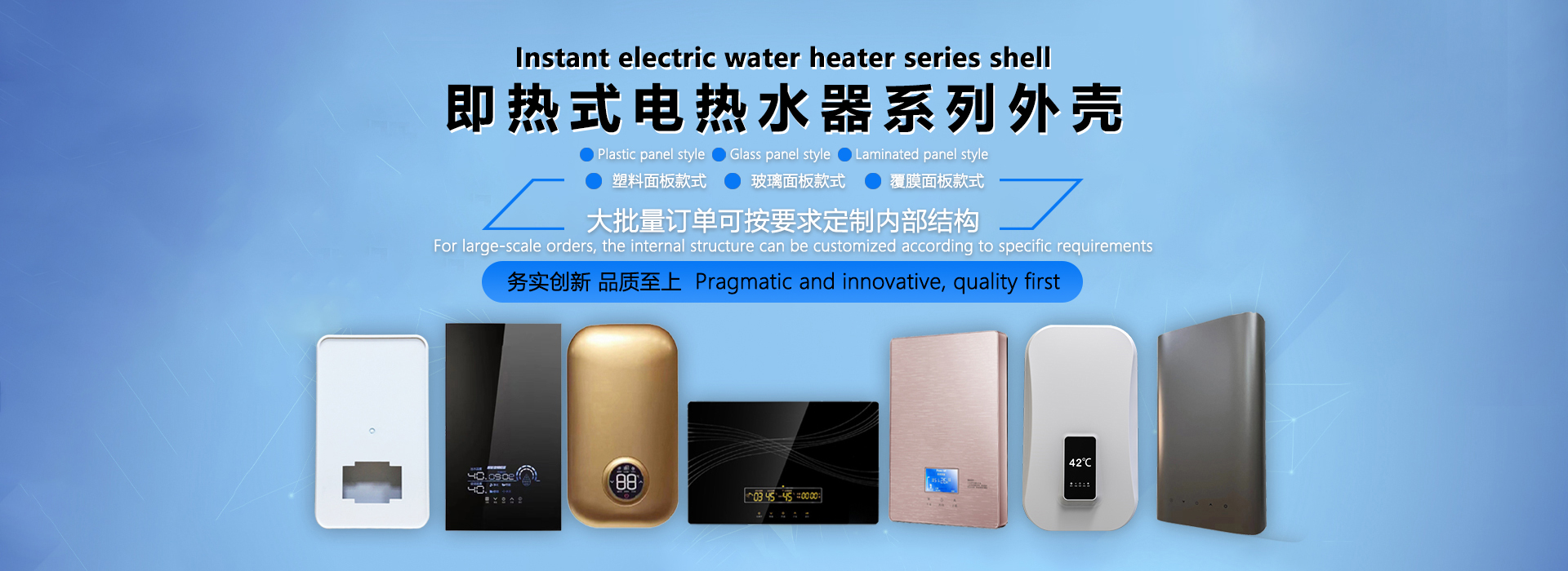 1)即热式、小厨宝、速热式、洗手宝等电热水器系列产品外壳;